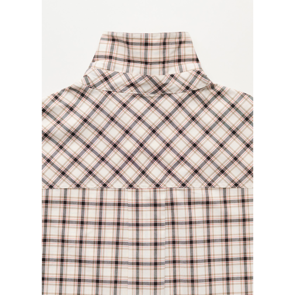 En ærmeløs, klassisk skjorte fremstillet af fin, økologisk bomuld. Designet i enafslappet pasform og er detaljeret med krave, knaplukning, kurvet kantlinje, markeret bærestykke på ryggen og et elegant mønster i sæsonens karakteristiske tern.