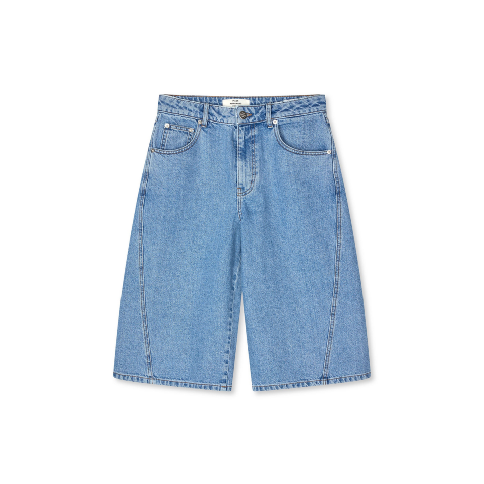 Klassiske denimshorts med lige ben og moderne udtryk. Shortsene har fem-lomme-design, bæltestropper, markerede sømforløb foran samt en løs, komfortabel pasform.